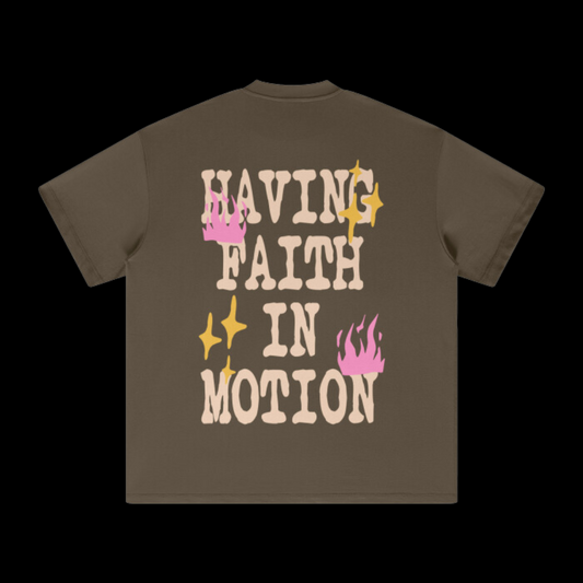 Having Faith in Motion Unisex Heavyweight Earth Tone Loose Fit T-Shirt